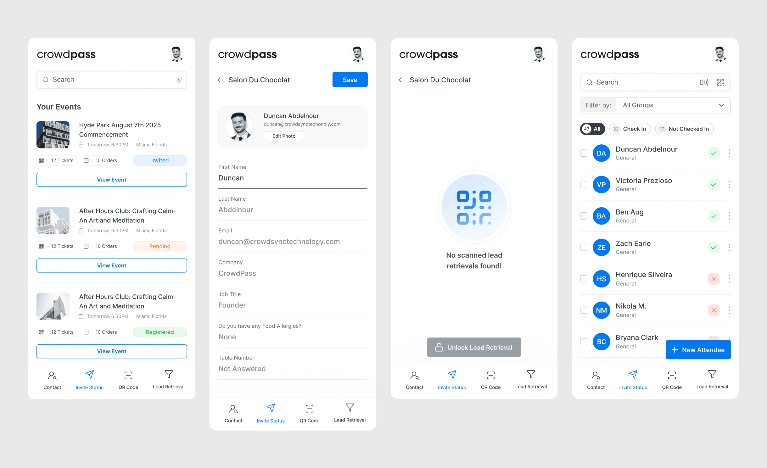 The design work for CrowdPass focused on crafting a user experience that simplifies complex event operations while delivering clarity and control.